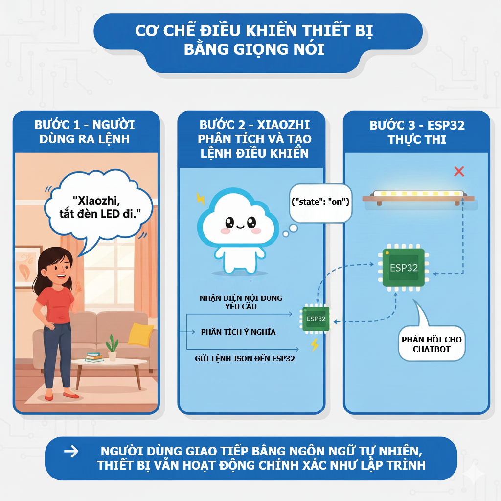→ Người dùng giao tiếp bằng ngôn ngữ tự nhiên, thiết bị vẫn hoạt động chính xác như lập trình.